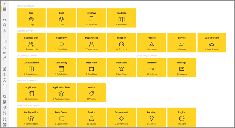 With EA Composer you store your entire architecture portfolio in one convenient location, simplifying the way you manage your architecture assets. This typically includes your applications, interfaces and many more, the choice is yours and depends on which assets you are interested in most.