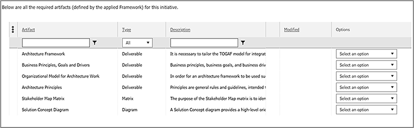 A single place to manage the initiatives in-flight. These include technology strategy projects to which you want to apply the TOGAF ADM and produce the various artifacts.