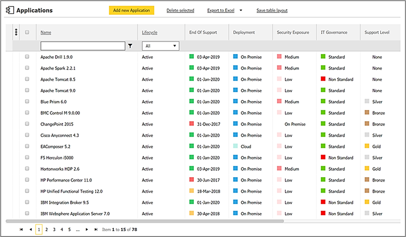 - Be able to drill down behind each initiative and see the underlying data: what applications are impacted, what gaps does it address, who is the owner etc.
